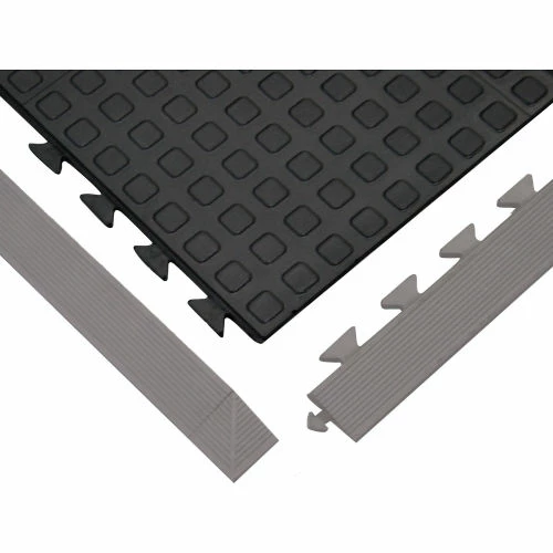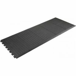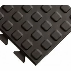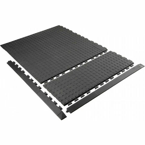 Rejuvenator Flooring offers 1’x3′ (30 cm x 91 cm) tiles that interlock on all 4 sides to customize on-site virtually any flooring configuration. The interlock is incredibly effective–and also hidden–so the ergonomic floor you’ve created is seamless and stable underfoot. Having the ability to customize in 1 foot (30 cm) increments and finish off with beveled ramps [yellow or black] sets Rejuvenator Flooring apart from all others